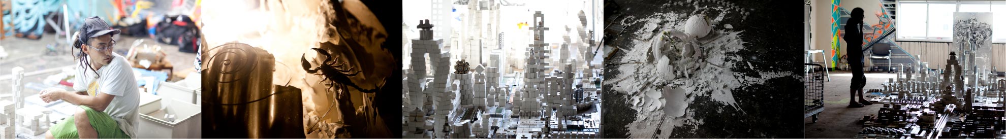 ビルの廃材で作られたミニチュアの街並みは、311のインパクトから発想を得たストーリーから構成されており、