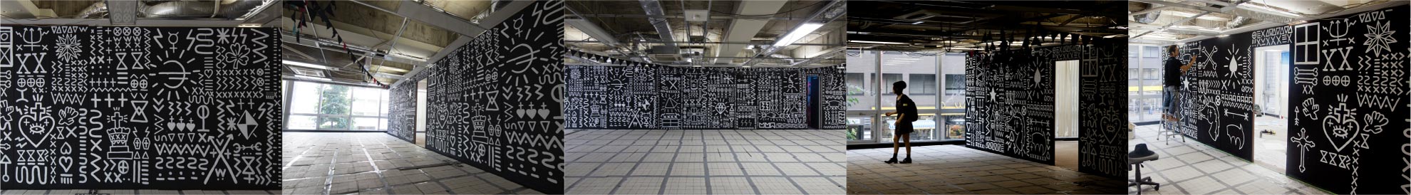 could be found all over the building walls, at times written in reverse,