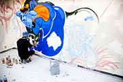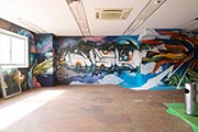in aerosol written characters and letters to give the whole room a jungle-like feel.