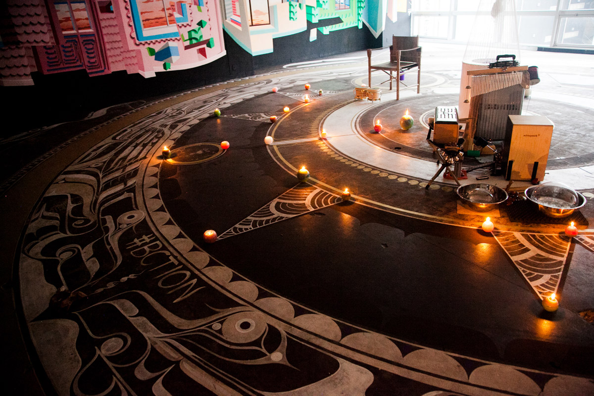 The mahojin [a magic square/circle involving math] painted on the floor in the centre of this room