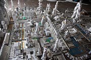 The imagination for the story behind the miniature street model made from the venue’s scrapped